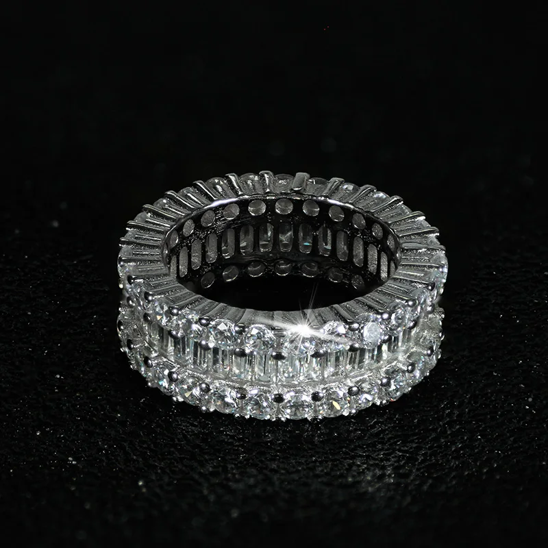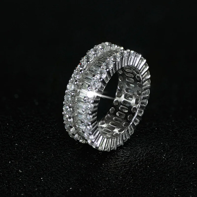 Роскошное серебряное кольцо в эстетике багета с цирконом Вечность к...