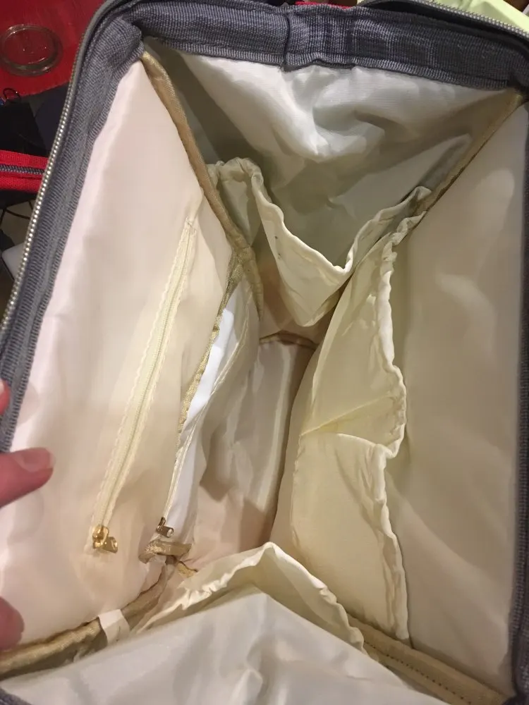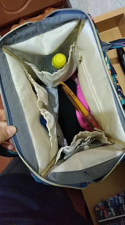 Очень быстро пришел, сделан качественно, нитки не торчат. молния ходит очень легко. внутри много отделов, классно что внизу пленка, можно ставить на пол и не запачкать. довольны покупкой. всем рекомендую