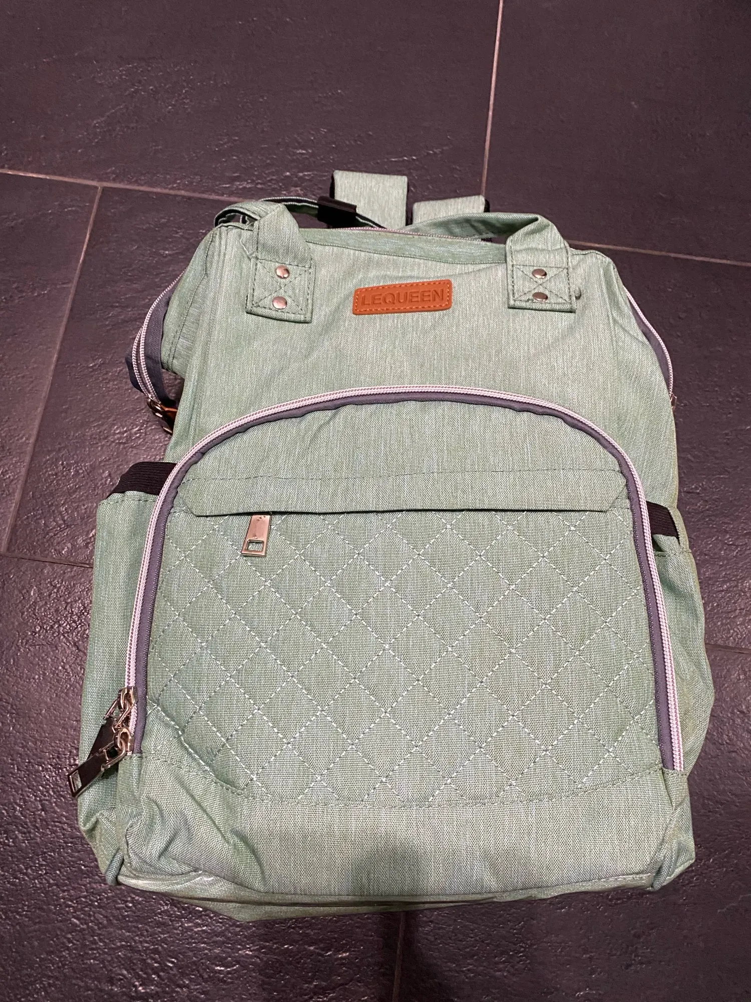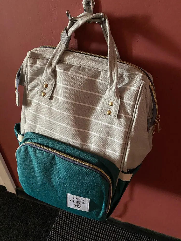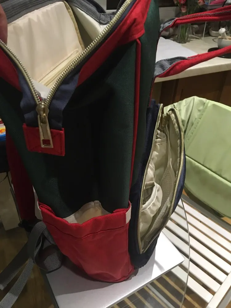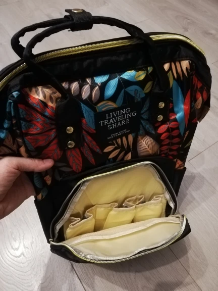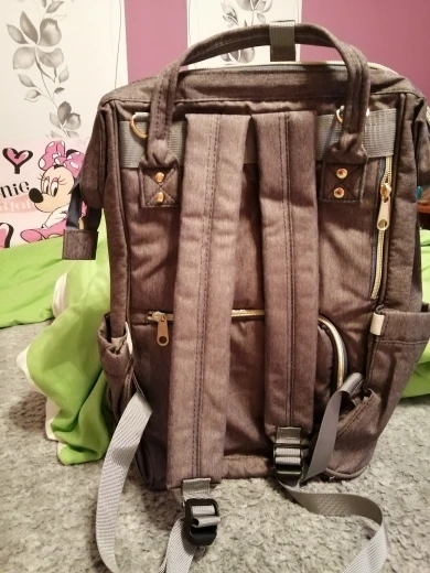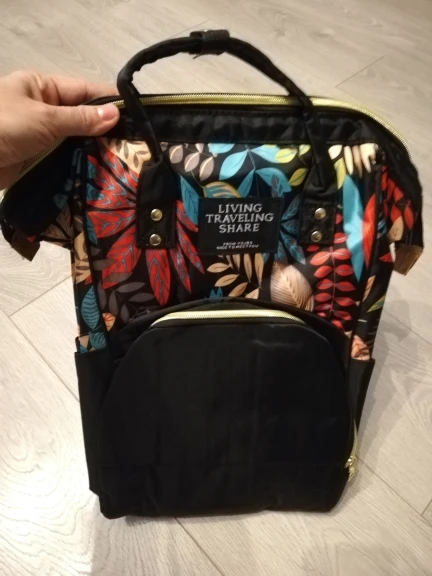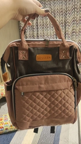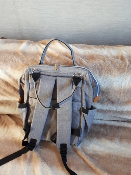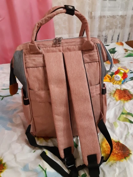 Отличная сумка для мам. Много карманов, отсеков, штучек для бутылочек, памперсов, салфеток. Удобные ручки. Брала в синем цвете под коляску - очень красивый глубокий цвет. Для того, чтобы крепить к ручке коляски, можно было использовать имеющийся ремешок с кнопкой на верхних ручках, но мне он показался ненадежным и я купила за 149р на Вайл*дбер*риз ремешки с карабинами для крепления за имеющиеся на рюкзаке металлические колечки.