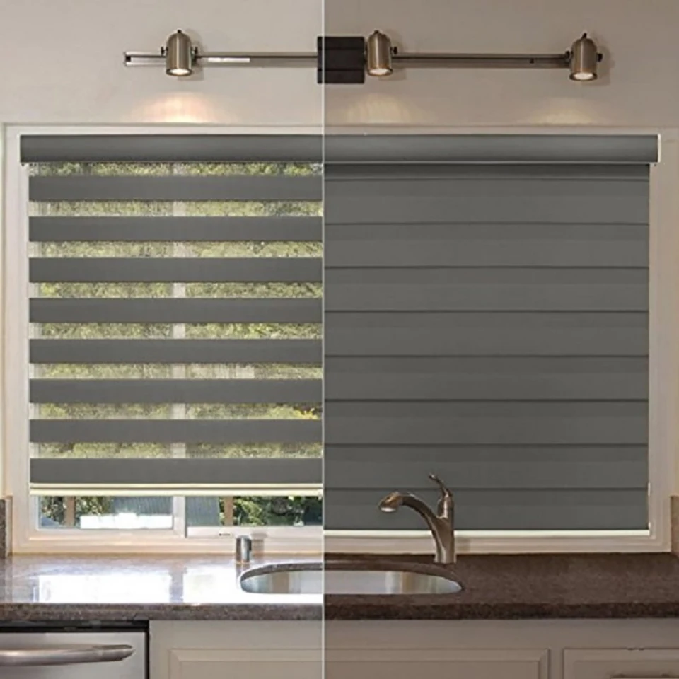 Индивидуальные оконные жалюзи из полиэстера, полосатые жалюзи, двухслойные роликовые жалюзи для окон