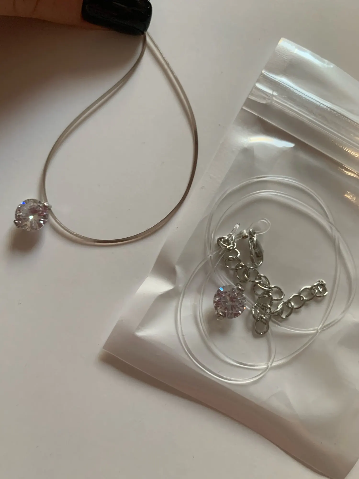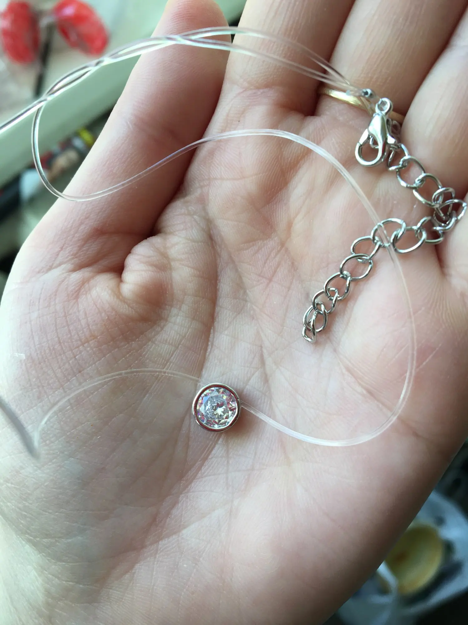 Заказ пришел быстро, Заказывала 11.11.2020, отправили 13, получила 30.11.2020. Леска, на которой висит камешек, не так уж невидим. Она прозрачная, но видно. Камешек на свету переливается всеми светами радуги, очень красиво. Камера не передает это. Советую, очень милое украшение.