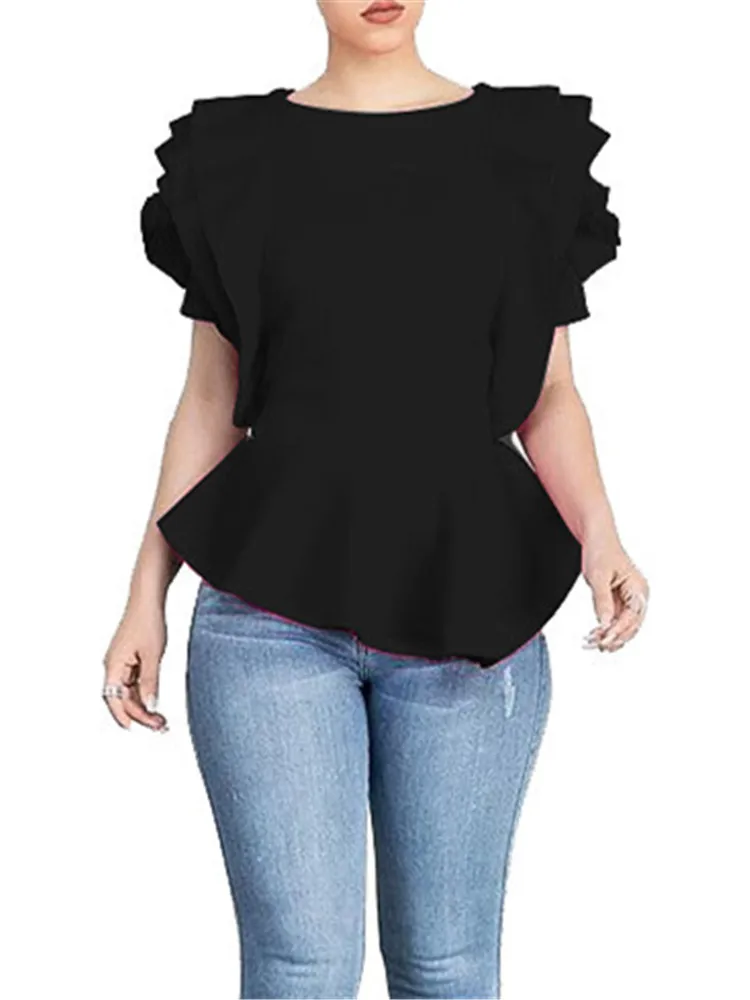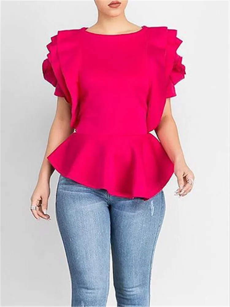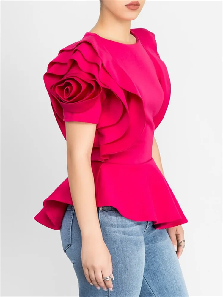 Женская блузка с рукавами-лепестками, розовая, красная, синяя, черн...