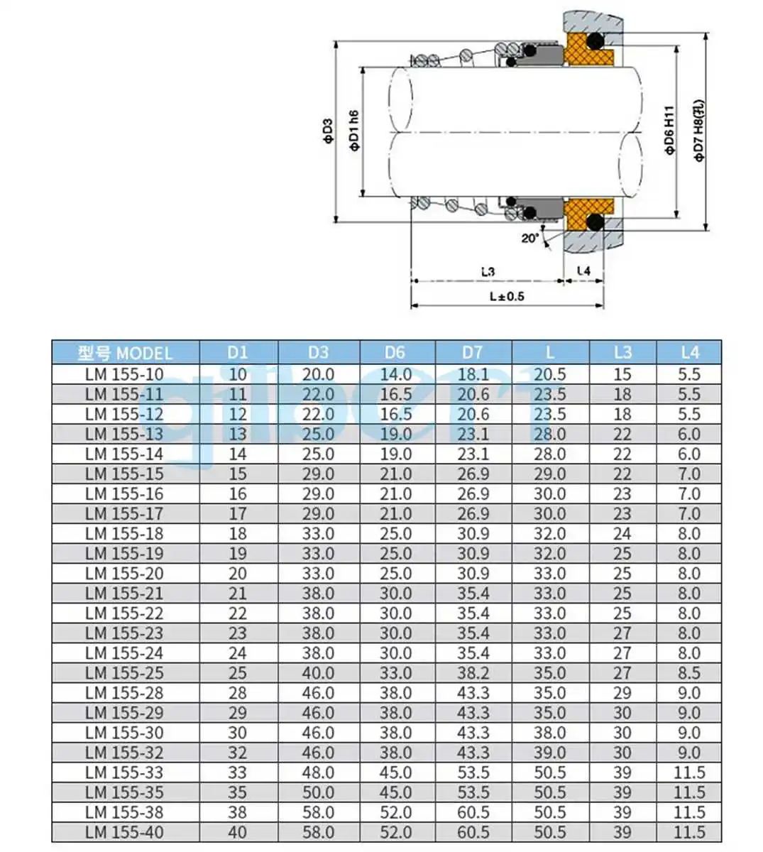 Модель 155 углеродноекерамическое кольцо NBR уплотнение механическое уплотнение вала одна катушка пружина для циркуляционного насоса водяного насоса