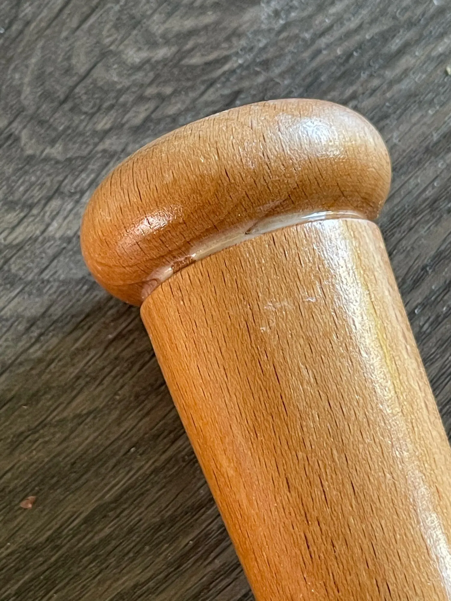 предыдущая бита была толще. Данная бита залита лаком, видны сильные подтёки.
