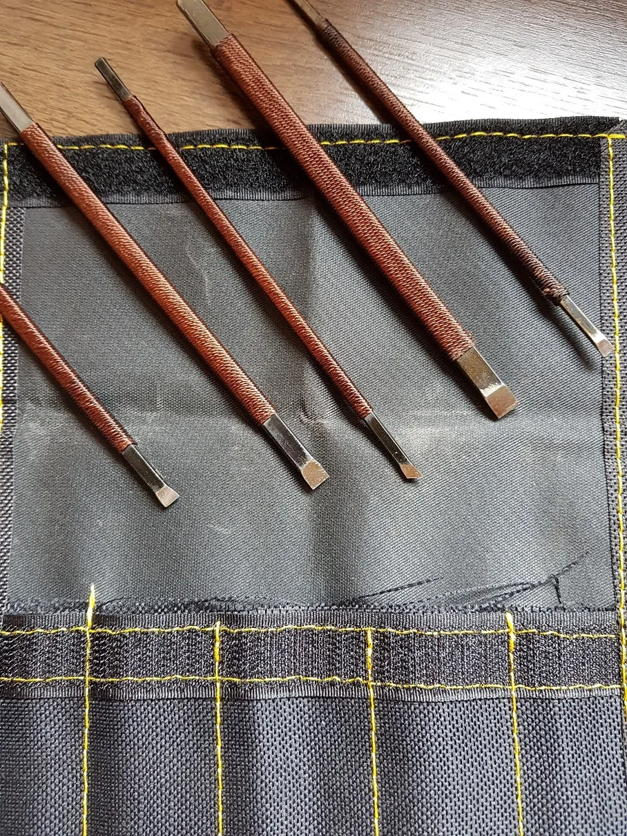 Набор из очень низкого качества. Плохо заточены, некоторые края зубила с чипами или полностью не отполированы. Честно говоря, для $10 большего количества я мог бы получить nextday доставку набора качества на Amazon и не ждать 40 дней, чтобы получить это. Какая трата времени и денег. Сумка для хранения также довольно дешевая, большинство качественных наборов долота за несколько долларов больше поставляется с красивым кожаным мешком или пластиковым чехлом.