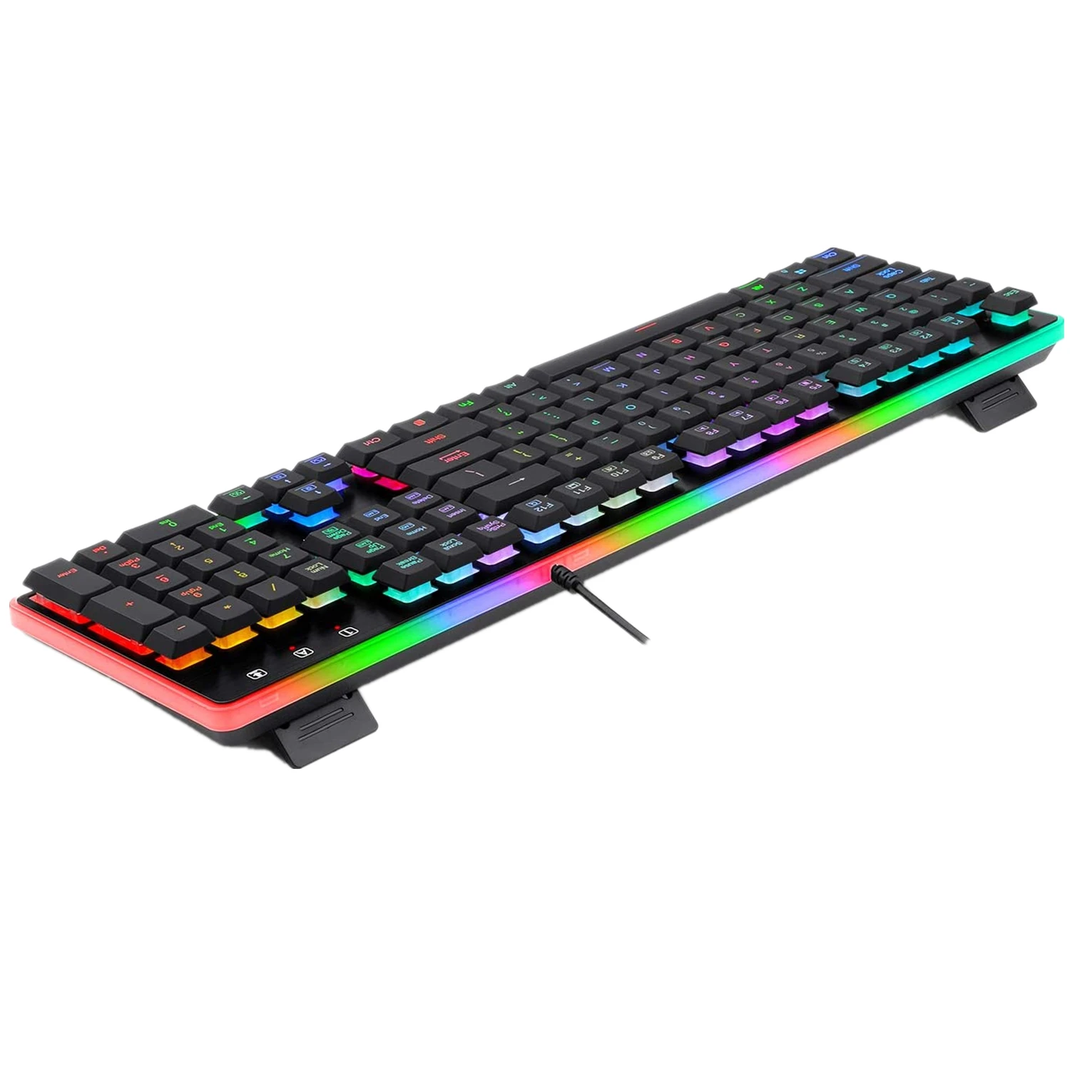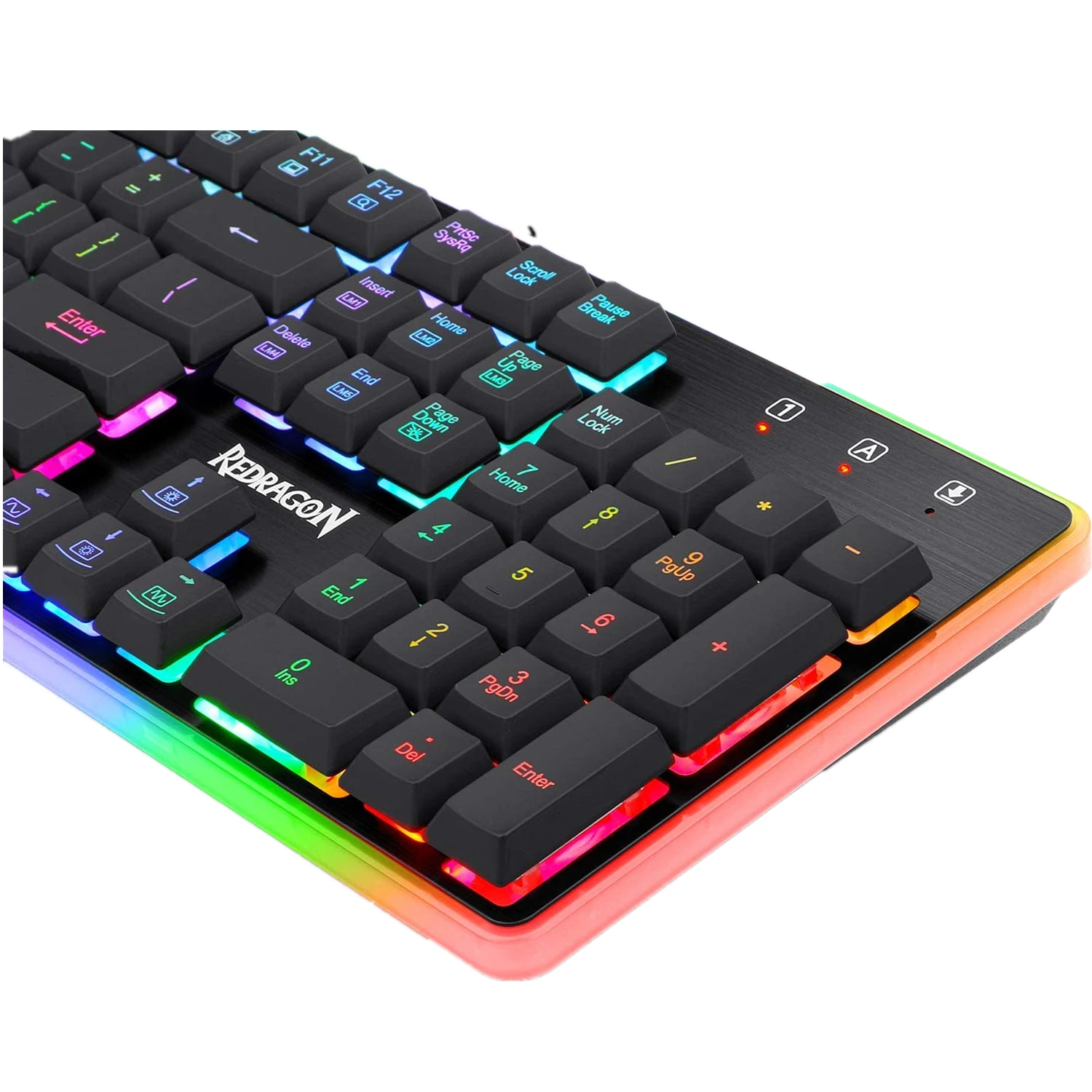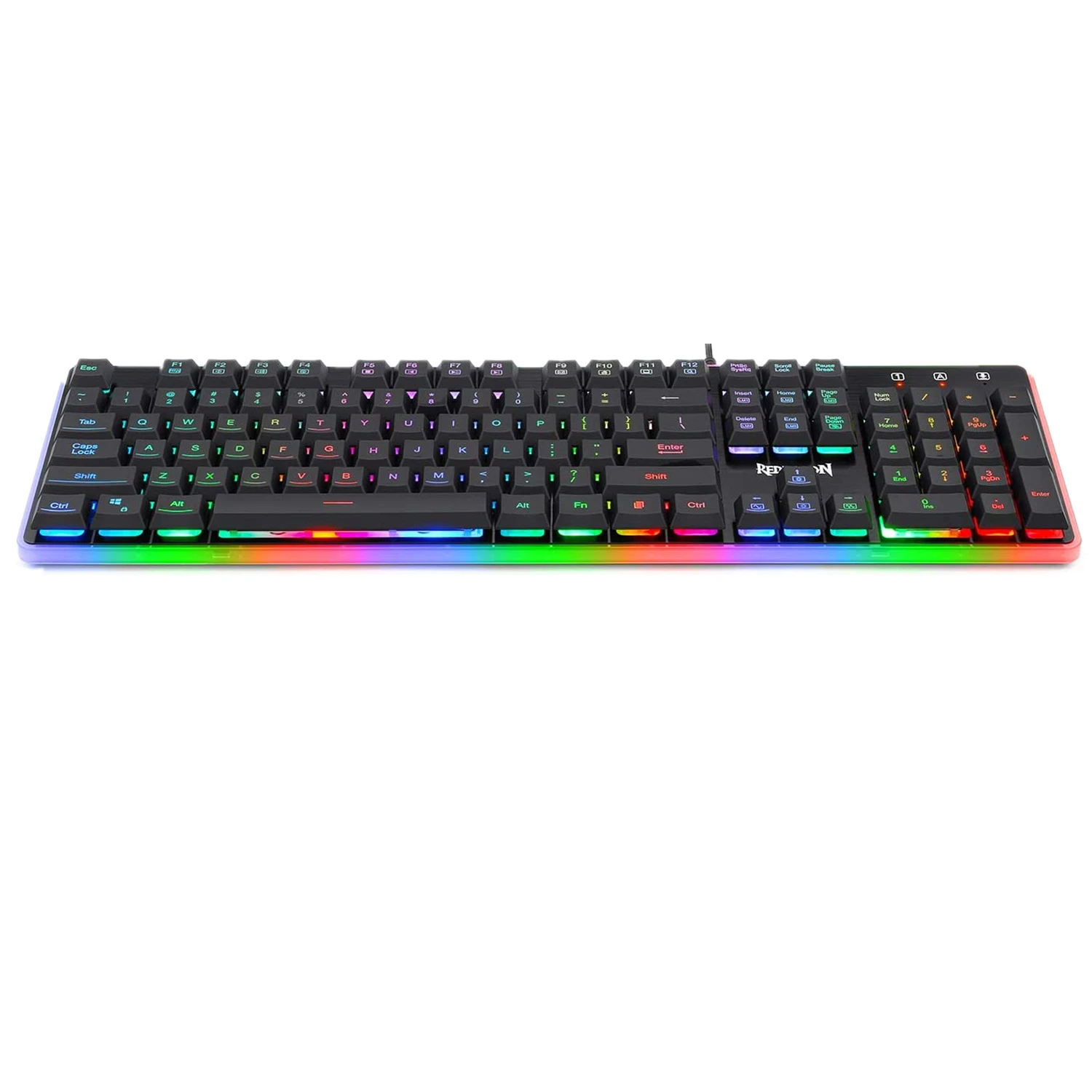RGB светодиодный игровой клавиатура с подсветкой; K509 Redragon RGB светодиодный клавиатура с подсветкой 7 различных цветов, (синий, зеленый, красный, голубой, желтый, фиолетовый, белый, ВЫКЛ.) 4 уровня яркости подсветки и регулируемая скорость дыхания, освещение может быть полностью выключено. Уникальная подсветка окружающего края клавиатуры, окружающая всю клавиатуру, меняет цвет в синхронизации со всеми клавишами подсветки.