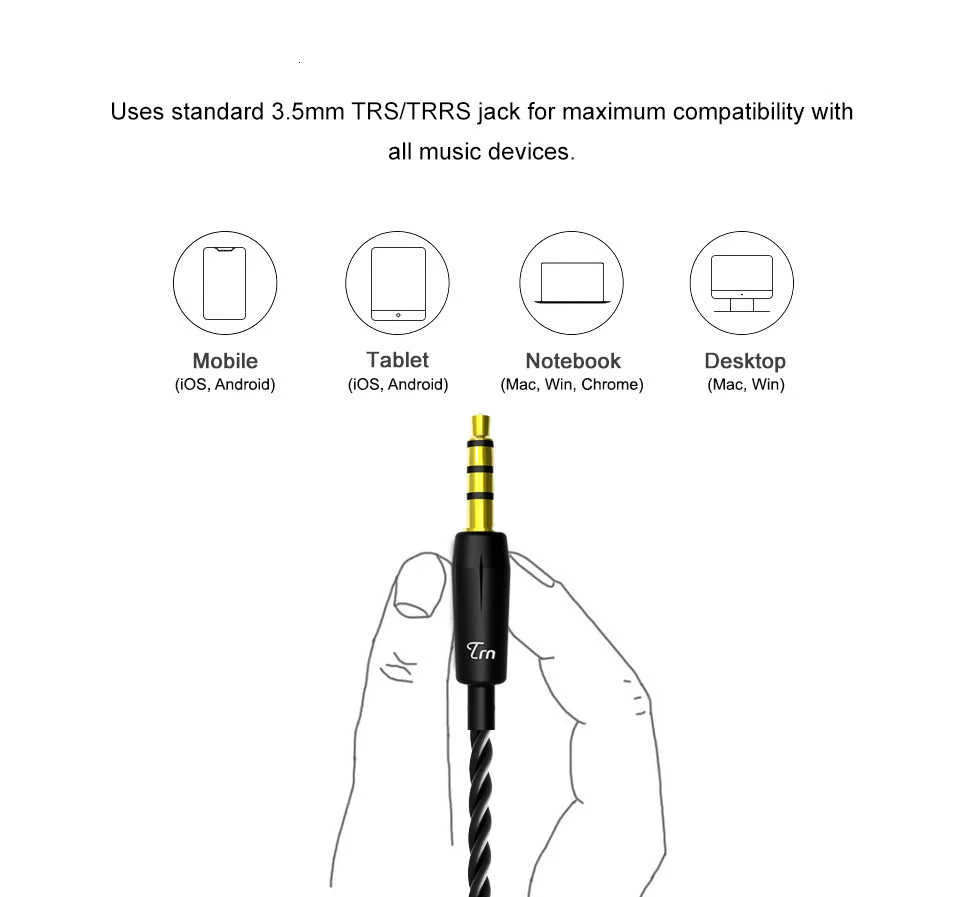 Наушники TRN с гибридной технологией 2DD + 2 BA, гарнитура для бега и спорта, Hi-Fi, монитор DJ, 2PIN, V80, V20, V60