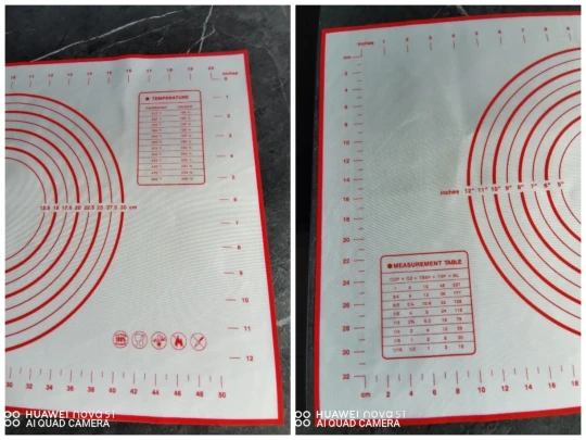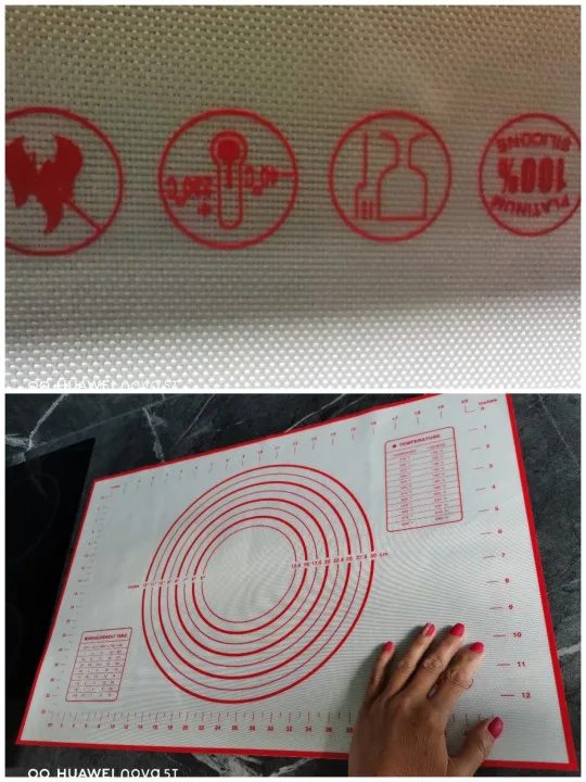 Великолепный силиконовый коврик для выпечки и раскатки теста. Купила за 270 рублей размер 40*60.Выдерживает температуру до 230 градусов Цельсия. Очень прочный и эластичный, (если я все правильно думаю) сеточка из стекловолокна залитая силиконом. Покупкой очень довольна. Доставка до Ленинградской области, город Выборг, две недели почтой России. Спасибо продавцу за качественную продукцию и быструю доставку. И отличную цену