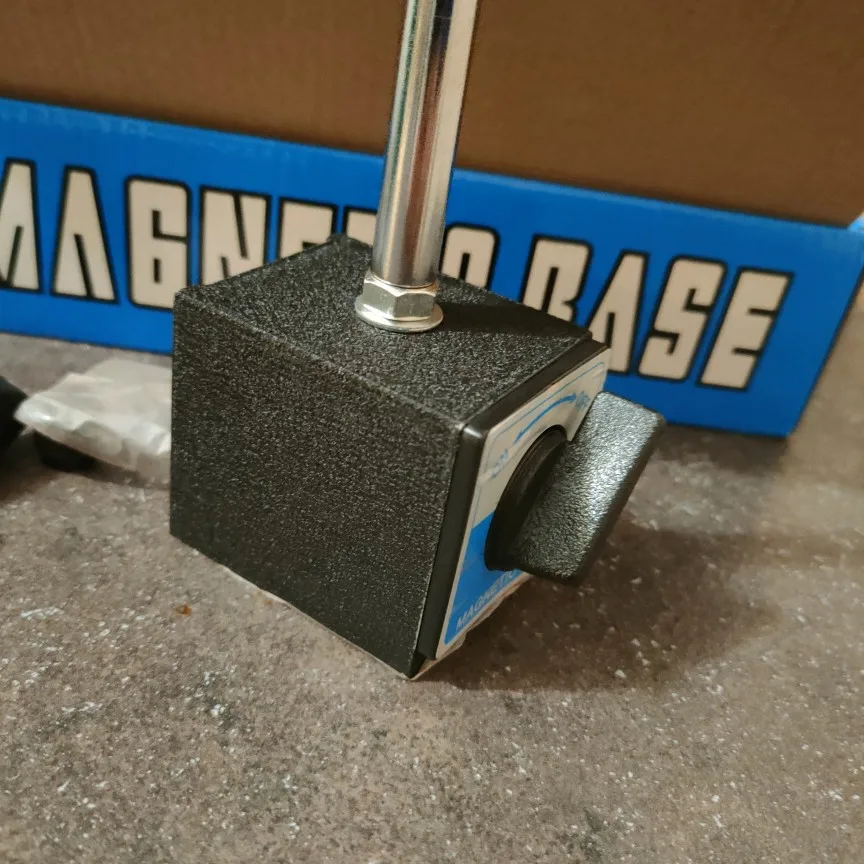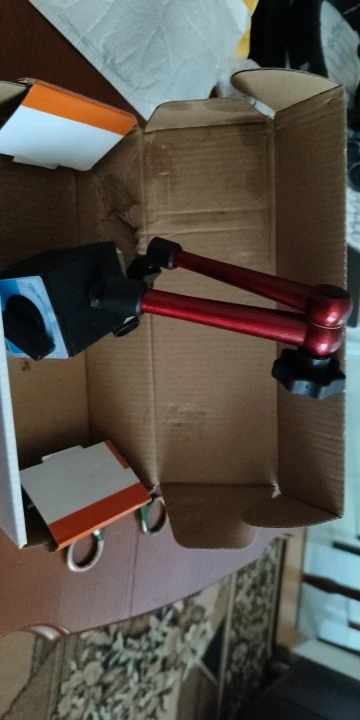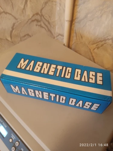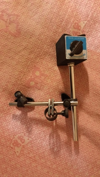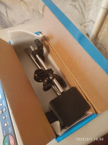 Заказывал магнитное основание с точной регулировкой, индикатор уже был (СССР). Всё подошло, магнит держит хорошо.