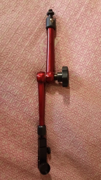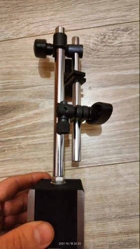 Итак. Получил эту штуковину. Вес посылки 1.5кг,это неплохо, основание держится хорошо,все крепления из стали,что тоже хорошо, штанги из кругляка,шлифованные,тонкая подстройка вообще в тему, есть крепление к индикатору и за шток и за ушко,где как удобнее.Измерять биение шпинделя и износ направляющих на вашей ТВшке самое то.
