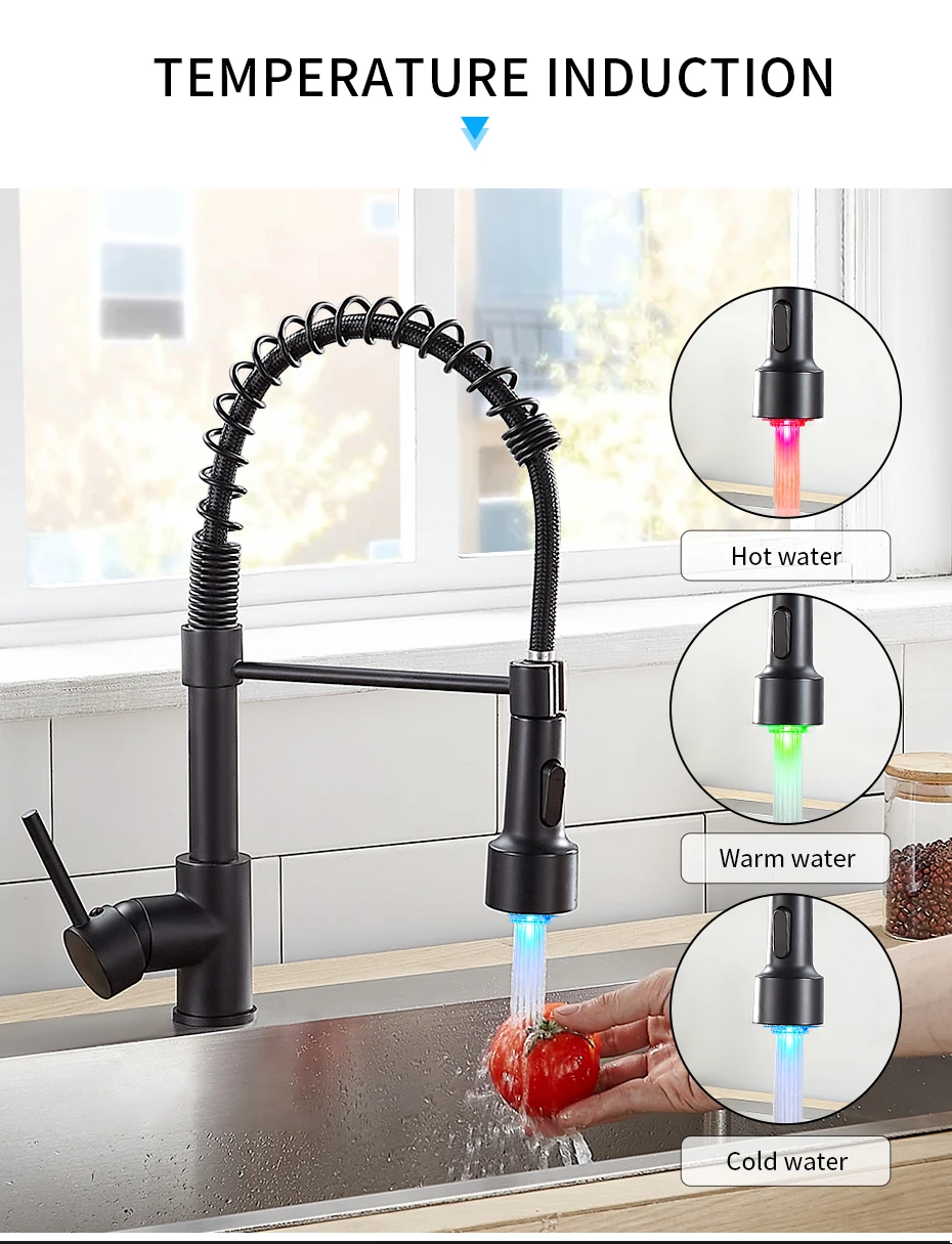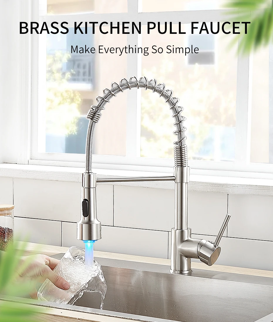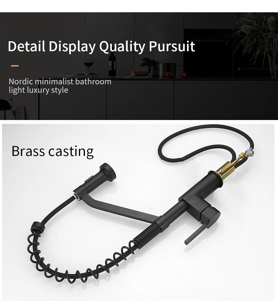 Смесители для кухни, латунные смесители для кухонной раковины, Однорычажный Выдвижной пружинный излив, смесители, кран для горячей и холодной воды 9009
