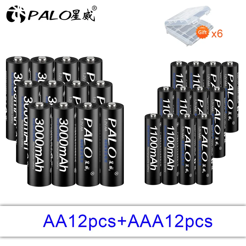 PALO AAA 1100mAh + AA 3000mAh ni-mh аккумуляторная батарея AAA 3A A...