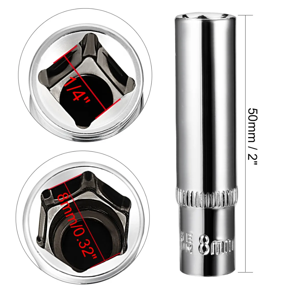 Uxcell 2 шт. 14 дюйма Привод 8 мм Cr-V 6 точечный глубокий разъем для тяжелых пневматических инструментов