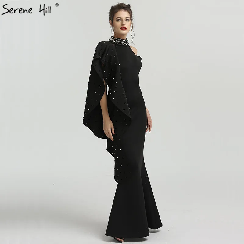 Новейший дизайн, черные вечерние платья русалки с высоким воротом, ...