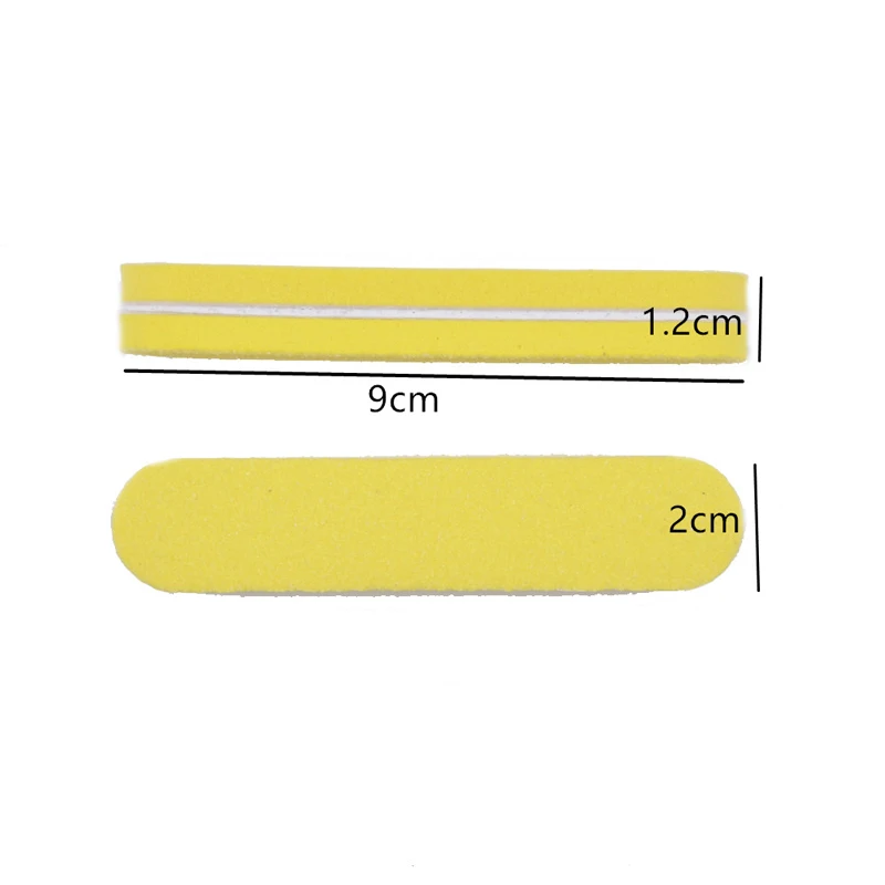 Размер: 9*2*1,2 см Упаковка: 10 шт./партия Материал: наждачная бумага на поверхности, губка (EVA) на второй слой, пластик (PP) в middle-level.Grit:100/180 повод: 1) основные инструменты для дизайна ногтей для подачи ногтей перед обработкой ногтей/наращивание ногтей/маникюрные процедуры 2) можно использовать для создания натуральных ногтей, накладных ногтей, наращивания ногтей, et3. 3) идеально подходит для ухода за пальцами, деревообработки, И салонного использования