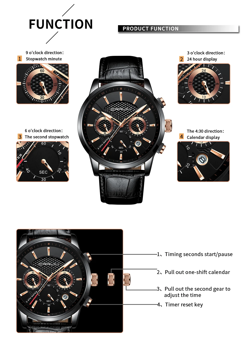 Водонепроницаемость: ручная стирка, плавание, без проблем! Идеально подходит для всех видов бизнеса, на каждый день, в помещении или для ежедневного использования. Примечание: Пожалуйста, не нажимайте кнопки в воде и не носите эти часы для длительного подводного плавания, например, дайвинга и т. Д.