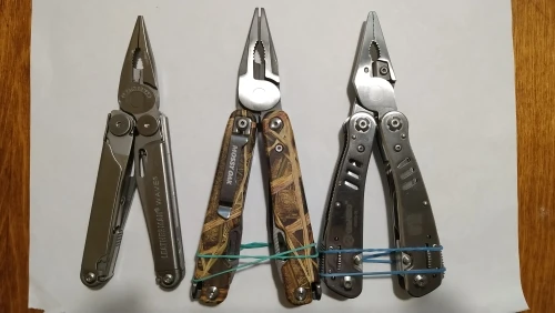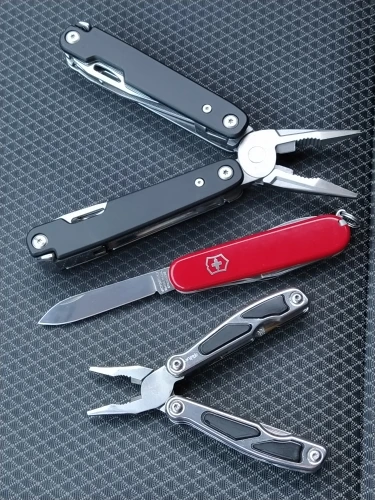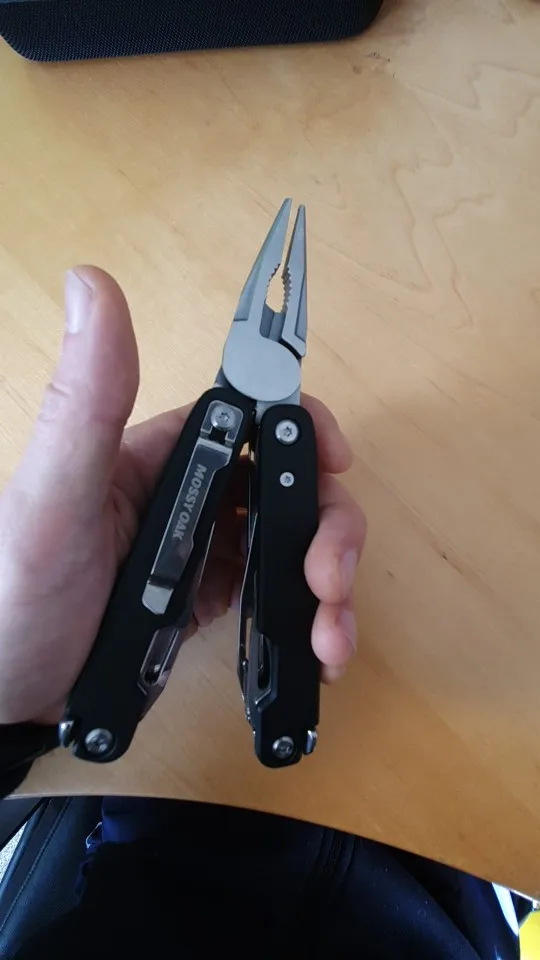 Ну такое... тул начального уровня. тяжёлый капец. здоровенный. накладки из пластика с аквапринтом. нож одним движением пальца не достать, из-за размеров рукоятей, туго и не достаточно хваткое отверстие. Ножниц нет, лучше б заместо серейтора были ножницы. в общем тул на 5-6 баллов из 10. купил за 700р, за эту цену пойдет в машине валяться.
