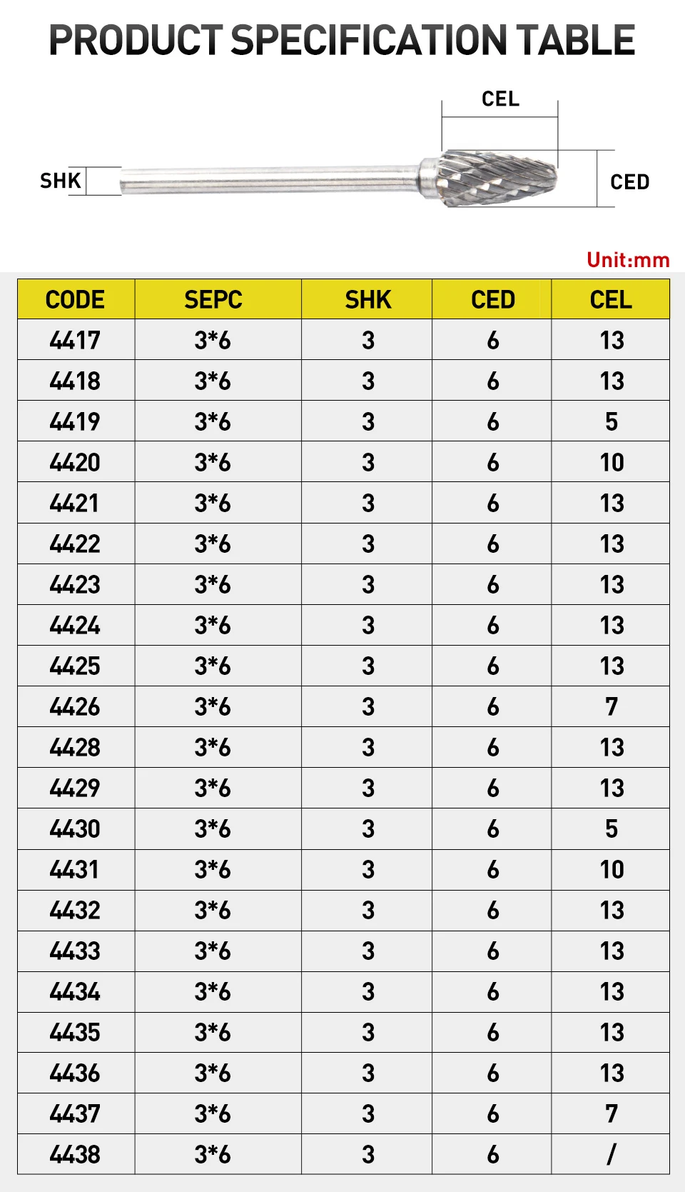 Диаметр хвостовика: 3 ммДиаметр режущей кромки: 6 мм