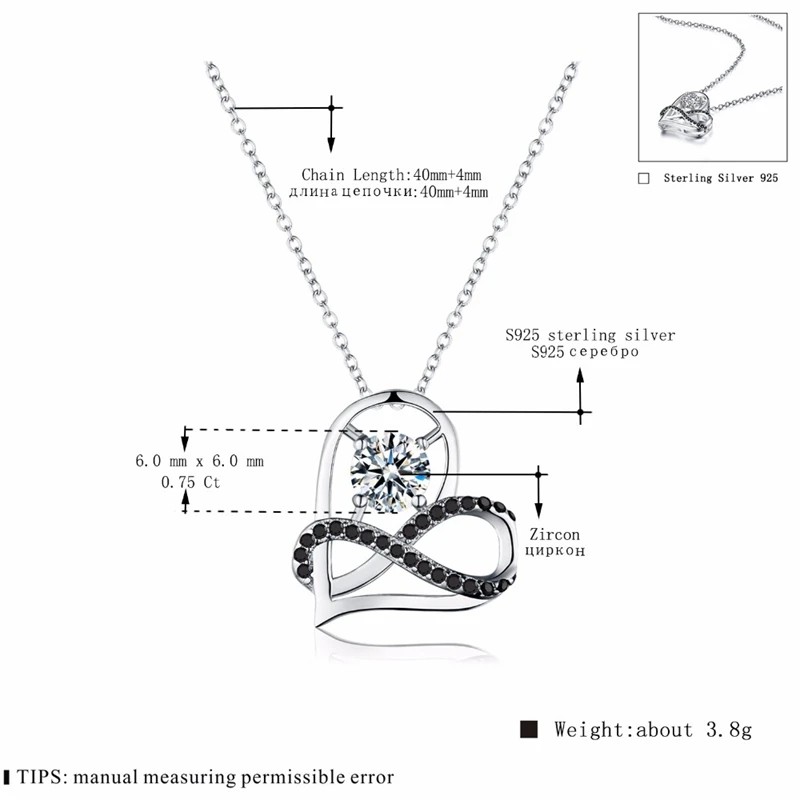 Женское Ожерелье с сердцем BLACK AWN, серебро 925 пробы, ювелирное изделие P070