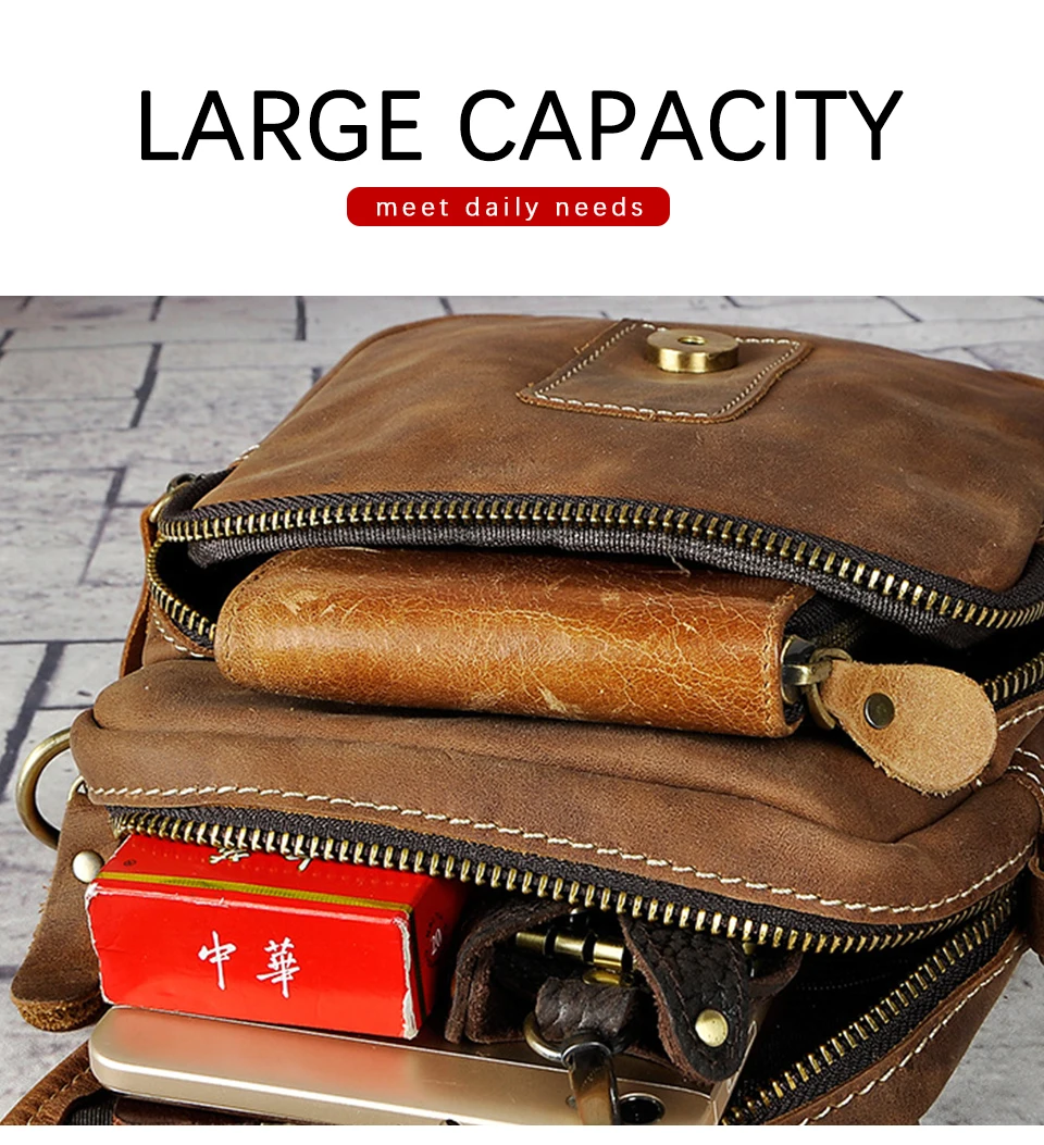 Продукт, безусловно, из кожи и выглядит как качественный, но обратите внимание, что он очень маленький и не такой, как на картинке. Я могу положить в него кошелек и телефон и, возможно, солнцезащитные очки, которые ищут больше, будут заказывать больше