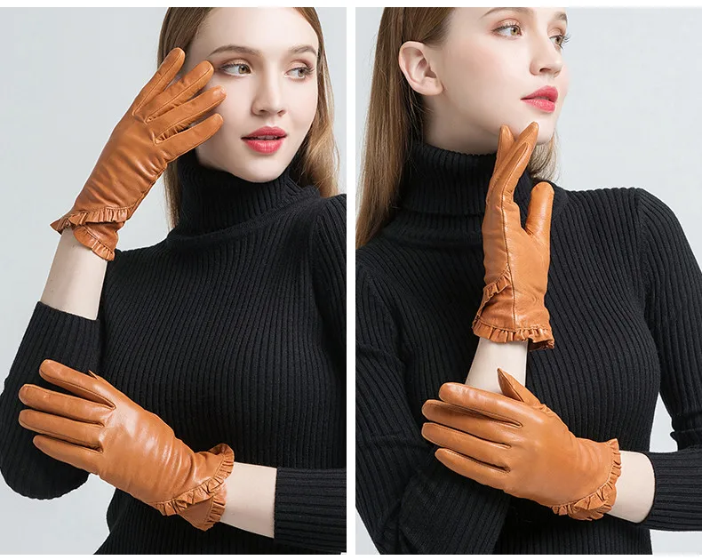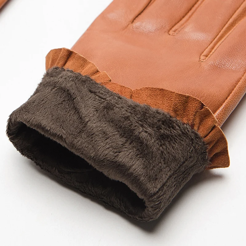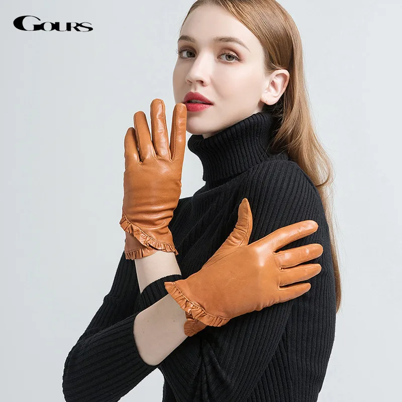 Gours женские перчатки из натуральной кожи, подходят для работы модные светильник коричневый козьей кожи перчатки без пальцев тепло зимой с цветочным обрамлением; Новое поступление GSL054