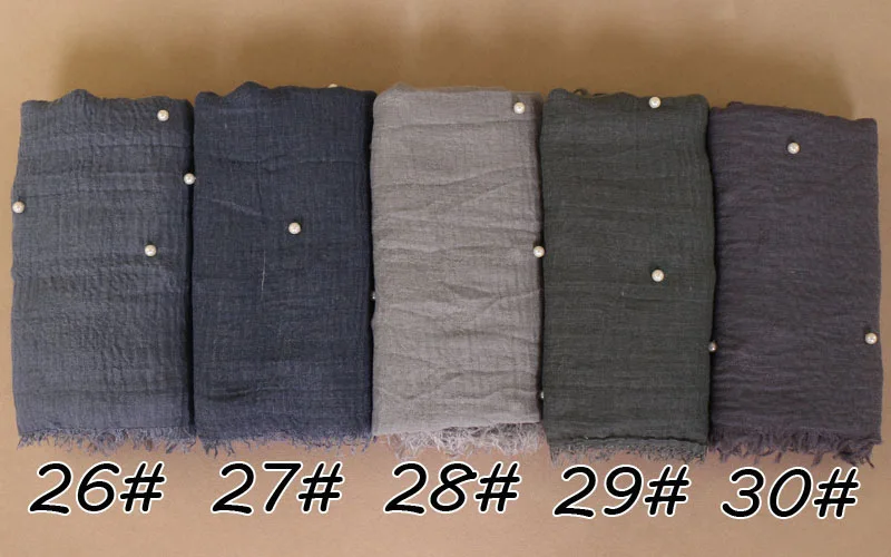 Мусульманский платок женский, из хлопка с заклепками, с жемчугом, мягкий, зимний, длинный, 190 Х100 см, однотонный шарф-хиджаб
