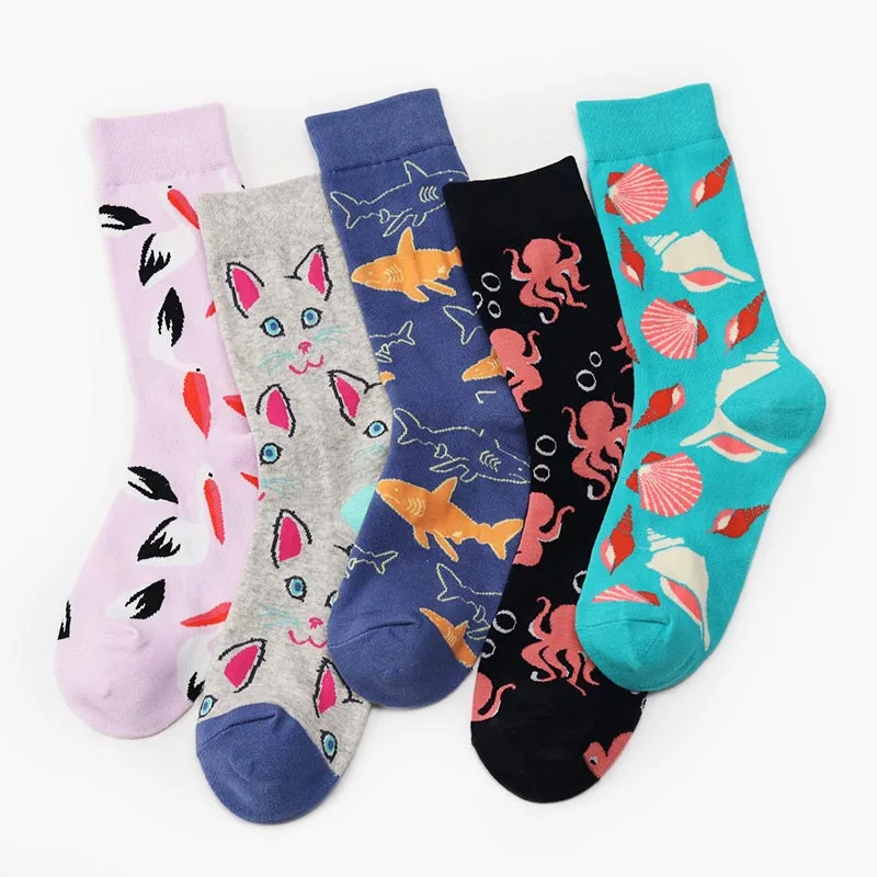 COSPLACOOL Мужские Носки Happy, милые носки из морепродуктов, теплые носки с рыбами для свадьбы, Яркие длинные забавные мужские носки в стиле хип-хоп, подарок для пары