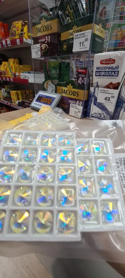 Доставка около месяца, думала будут большего размера, нужно было брать 10мм, пока не распечатывала от плёнки, сложно оценить реальный блеск в упаковке, Впервые беру такого размера камни у этого продавца, поэтому не подскажу как камни в носке на изделии, когда пошьёмся, дополню отзыв по блеску и скорости стирания напыления на гранях