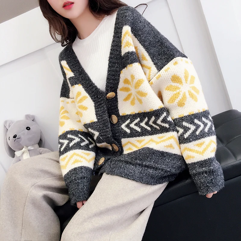 Женские кардиганы, осенне-зимняя теплая свободная вязаная куртка на пуговицах, базовые свитера, пальто, женский элегантный кардиган оверсайз SF864