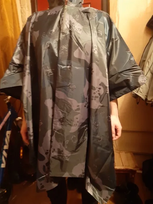 Всё как в описании,можно на себе носить,можно как тент натягивать,материал плотный тяжёлый, пончо складывается в камуфляжную сумочку на молнии,для удобства хранения. Продавцу спасибо,будут дожди будем тестить.
