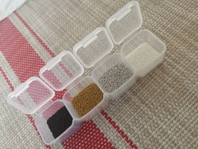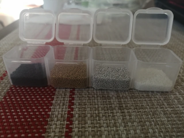 Бусины не очень блестящие, и коробка не удерживает их. Крышка не полностью закрывает коробку. Бусины не заполняют коробку так же, как на картинке. За эти деньги это оторвать.