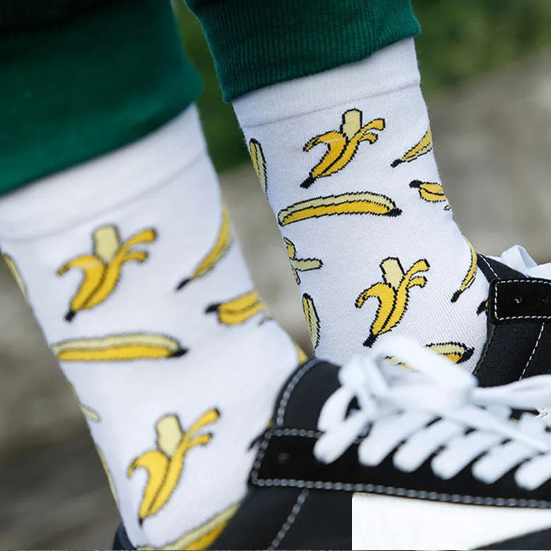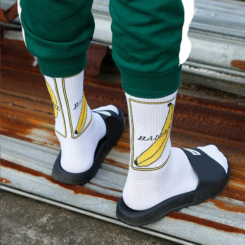 Модные брендовые Длинные мужские носки из чесаного хлопка в стиле хип-хоп Харадзюку, повседневные забавные носки с бананами, мужские носки для свадьбы