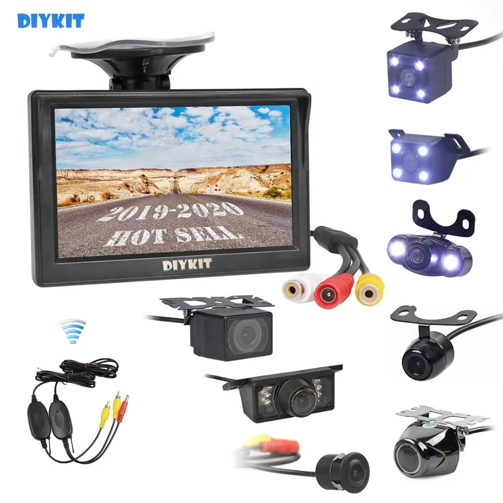 DIYKIT беспроводной 5 "автомобильный монитор заднего вида, автостоянка, Vedio + светодиодный, ночное видение, резервная камера заднего вида, HD камера заднего вида