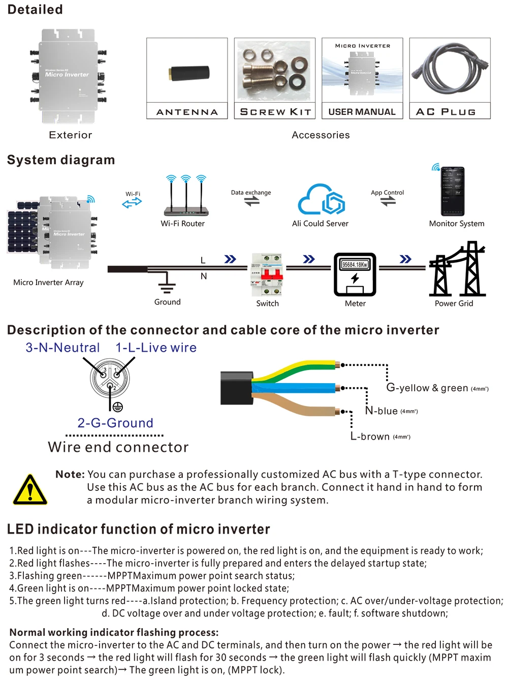 1200 Вт микро-сетчатый инвертор, макс. PV 4*375 Вт, чистый синусоидальный сигнал, выходная мощность, фреза в AC180-260 В, водонепроницаемый Солнечный преобразователь IP67