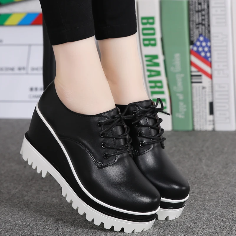 Женские туфли на платформе EOFK, черные кожаные туфли на очень высоком каблуке, на шнуровке, для весны и осени