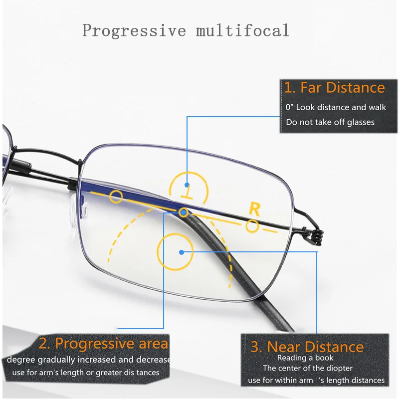 Очки для чтения без оправы с умным зумом, титановые прогрессивные о...