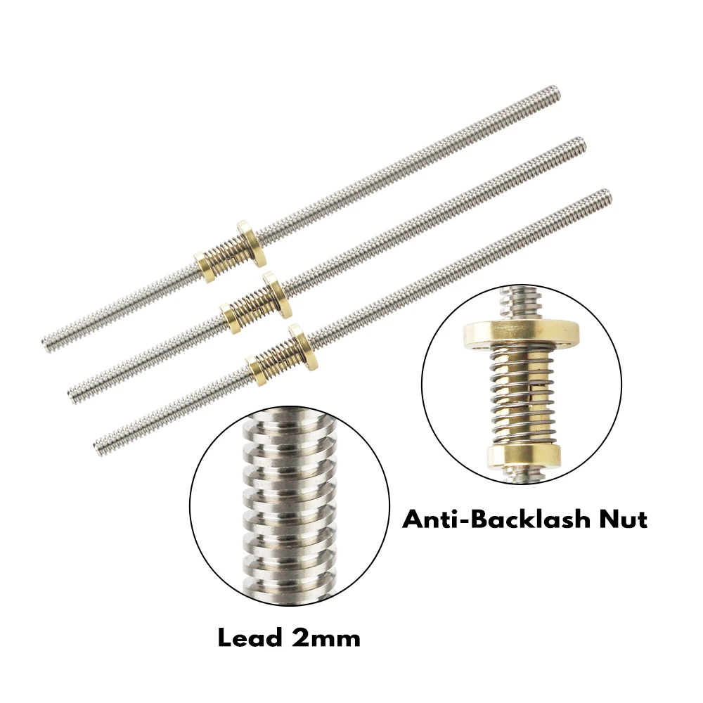 Материал: 304 свинцовый винт из нержавеющей стали/анти-люфт гайкаДиаметр винта: 8 ммДлина: 200/250/300/350/400/500 ммРасстояние между винтами: 2 ммСвинец резьбы: 2 ммДиапазон: аксессуары для 3D-принтера Reprap makerbot