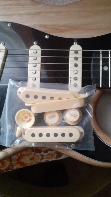 Доставка в Воронеж заняла 2 недели, качество хорошее. Для тех, кто пишет про несовпадение отверстий - у всех 3-х крышек отверстия на разном расстоянии друг от друга, рассчитаны на сет звукоснимателей, у которых межцентровое расстояние растет от грифа к бриджу.