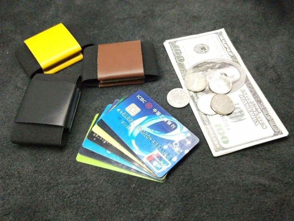 Мы выбираем лучшую эластичную ткань. Посередине один кусок кожи. Форма как «М». Так что вы можете положить cands или наличные в две стороны.