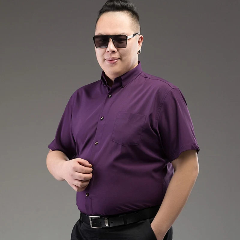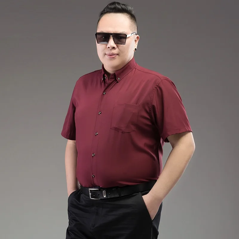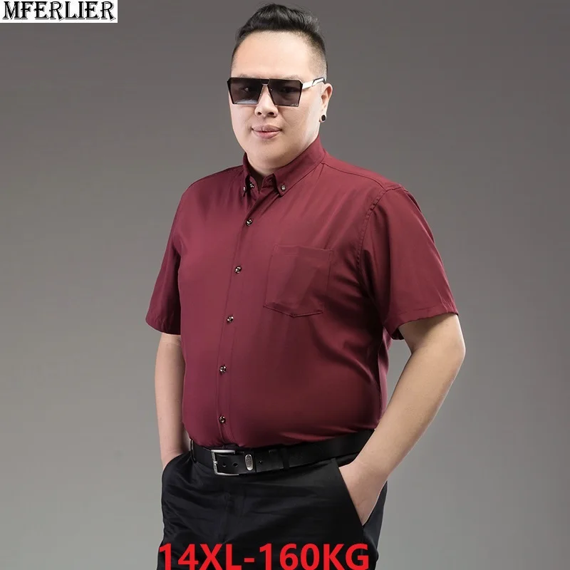 Летние мужские размера плюс короткая рубашка с рукавами официальные 8XL 9XL 10XL 12XL 14XL рубашка с длинным рукавом из хлопка красного цвета, бордовый, синий, для работы, бизнеса, 58-60 62 64