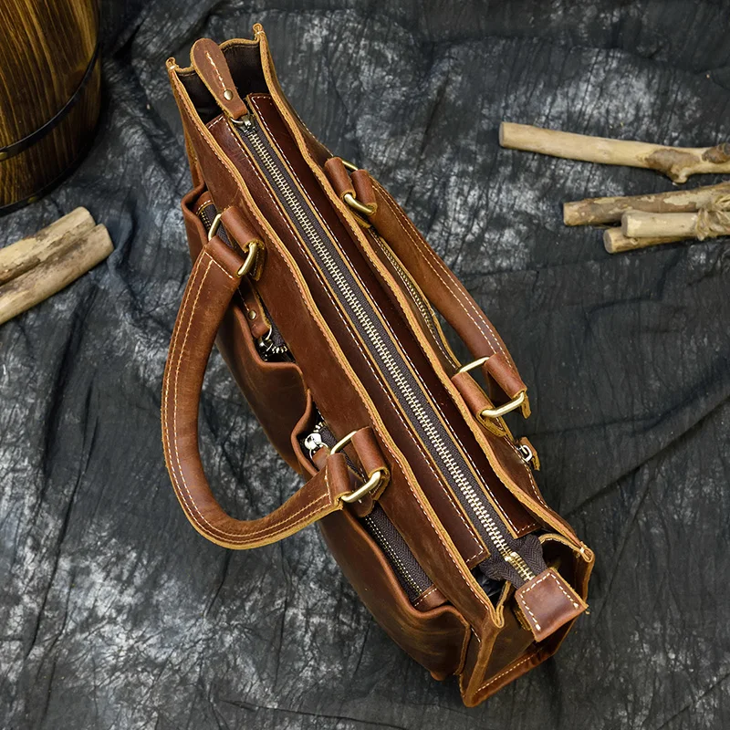 Винтажный Мужской портфель из натуральной воловьей кожи Crazy Horse, деловая сумка из коровьей кожи, портфель для ноутбука, сумка-мессенджер