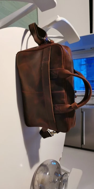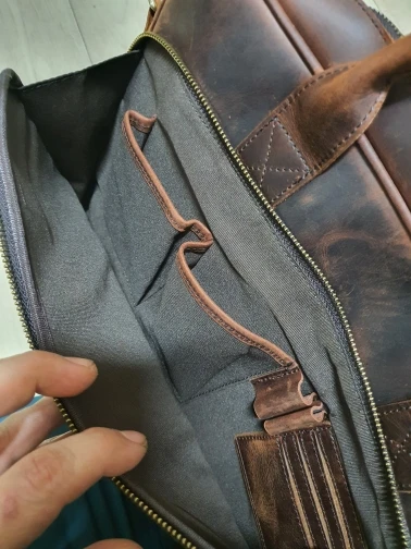 Просто ОФИГЕННАЯ сумка! Толстая кожа, кожа натуральная. Держит форму, очень плотная. Внутри плотная ткань. качественный пошив, мощные замки с мягким ходом. Прям то, что хотел. У нас в местных магазинах такие минимум раза в три дороже.