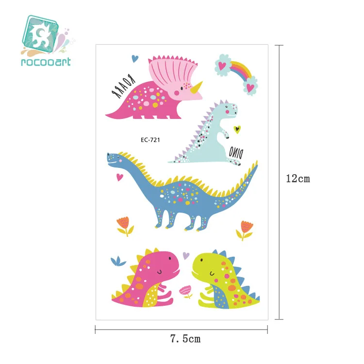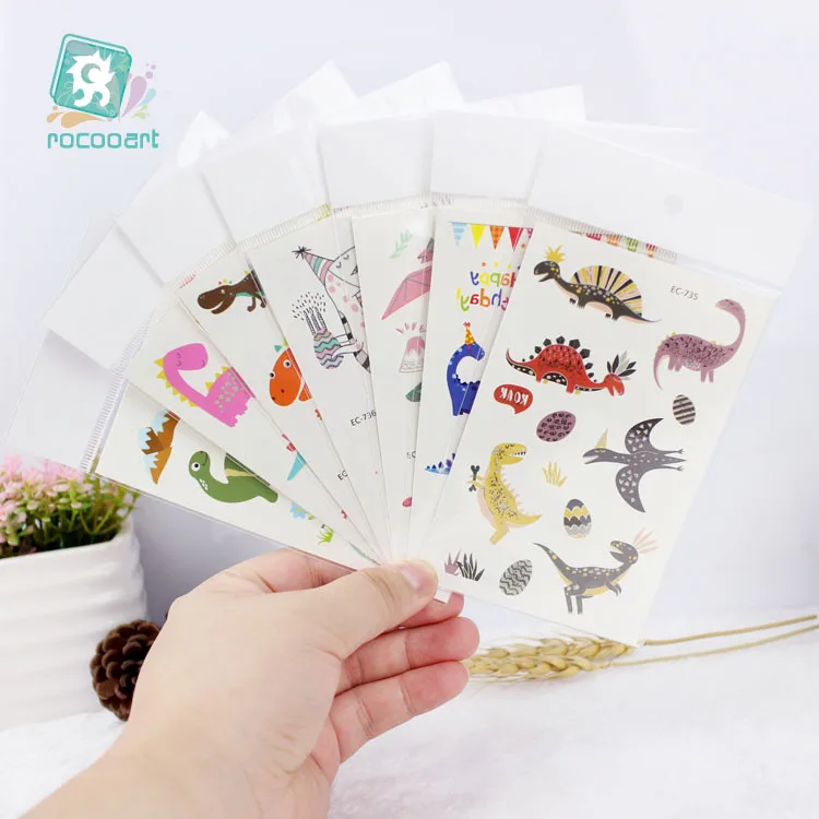Rocooart динозавры тату наклейки детский подарок на день рождения поддельные татуировки Детские татуировки боди-арт водонепроницаемые временные татуировки