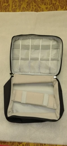 Prodotto ben realizzato e con finiture adeguate. La versione di dimensione media avrebbe bisogno di un contenitore separato con cerniera per gli oggetti più piccoli come chiavette USB e adattatori e un elemento di separazione interna aggiuntivo. È comunque possibile suddividere li spazio interno con elementi che si fissano all'involucro interno con velcro.