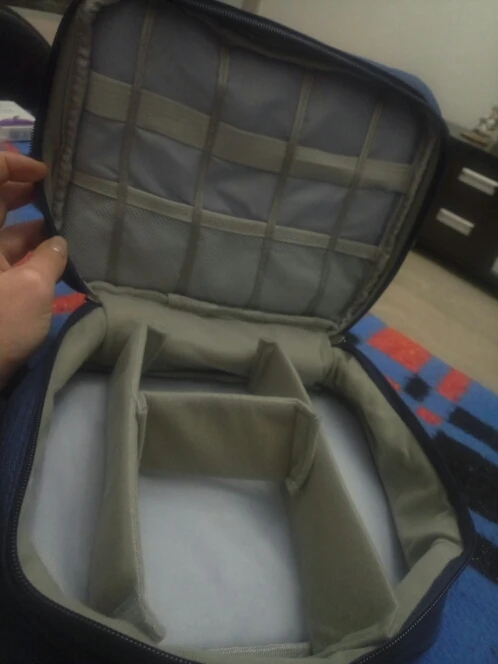 Отличная сумка для всяких разных принадлежностей: шнуров, зарядок, кейсов, жестких дисков. Дополнительно предусмотрен отсек для закрепления. Также есть ручка чтобы было удобно таскать за ручку.