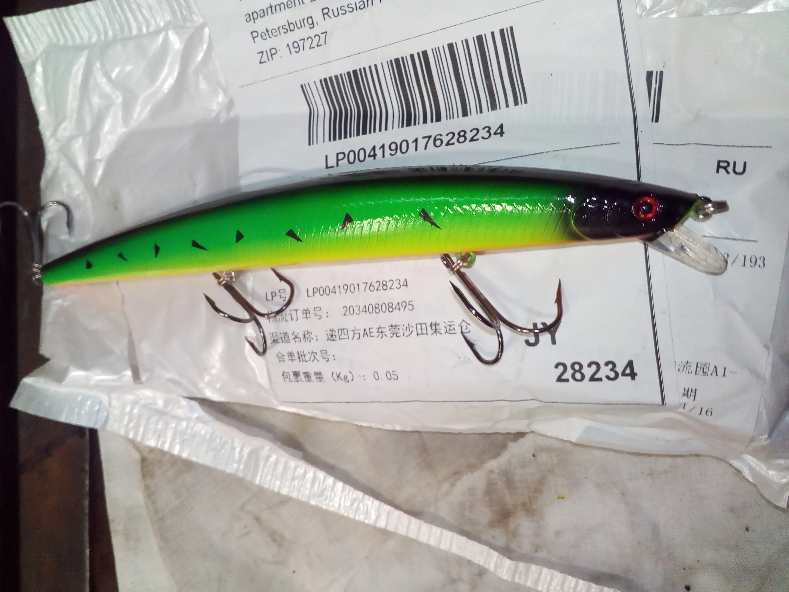Посылка пришла за месяц в г. Киров. Упаковано хорошо. Приманка по всем характеристикам сходится с заявленными. Очень качественно выполнены. Заказывала 2 шт.. Пришло 3. Спасибо продавцу. Буду заказывать еще