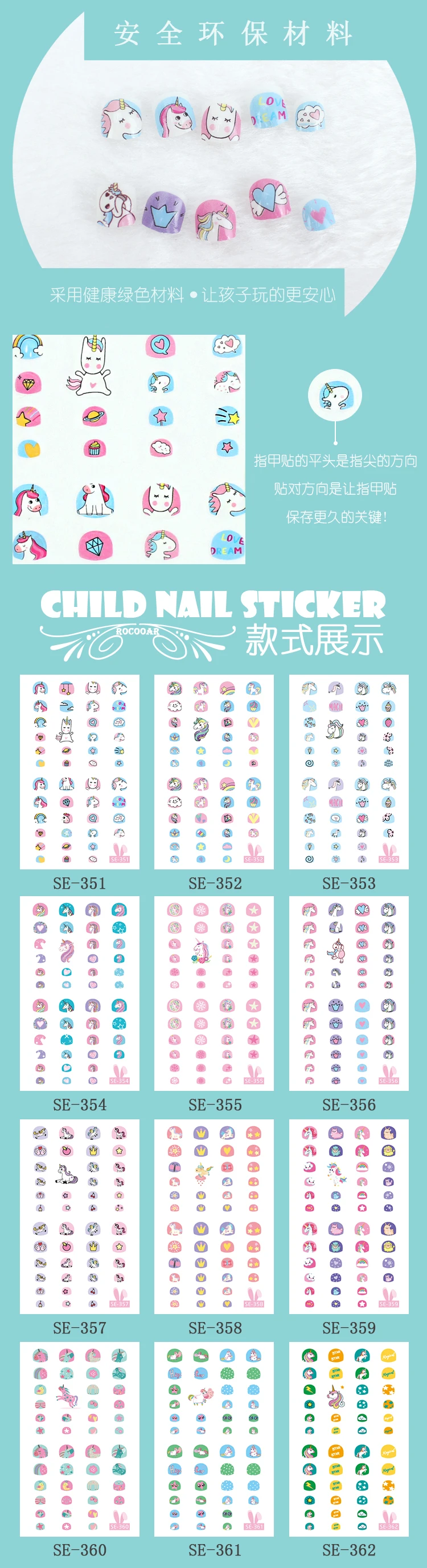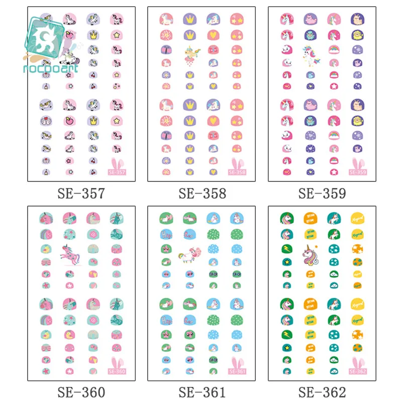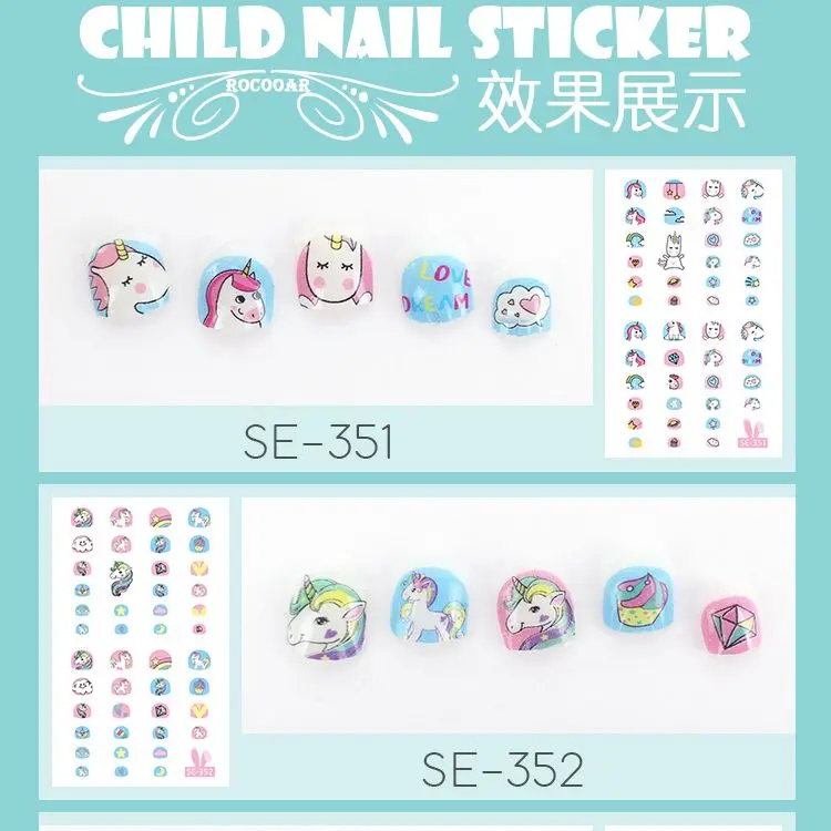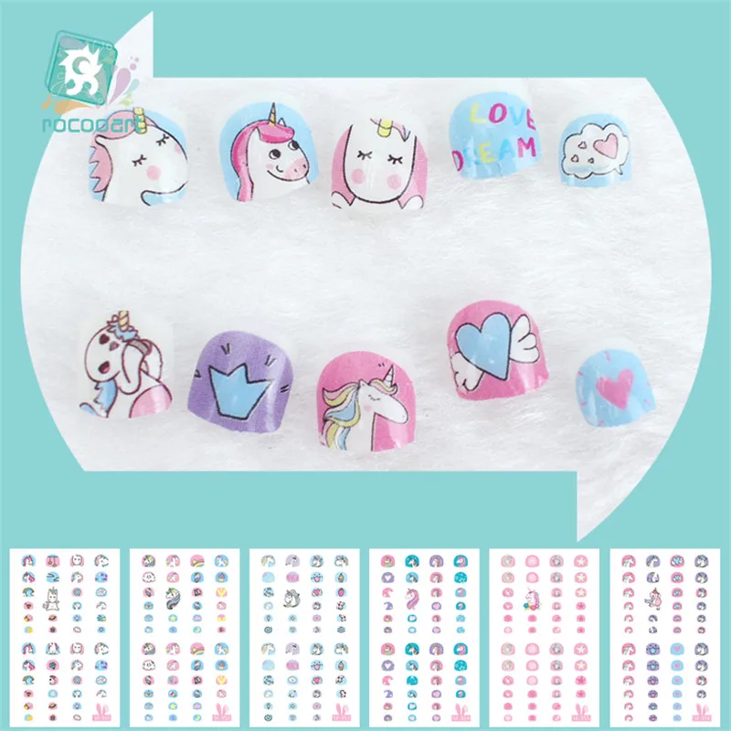 Лидер продаж, детские наклейки с единорогом для дизайна ногтей, 3D украшения для ногтей, самоклеющиеся наклейки с наконечниками, Мультяшные наклейки для ногтей для детей