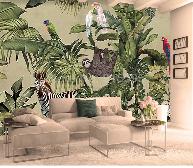 Пользовательские 3D фотообои тропический дождь лес птица Пальмовые Листья гостиная фон для телевизора настенная Фреска нетканые обои фрески