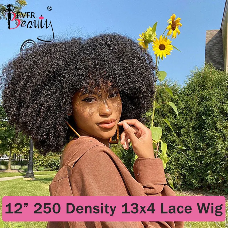 Монгольские афро курчавые вьющиеся кружевные передние человеческие волосы парики с челкой для женщин 4B 4C короткие человеческие волосы 13x6 кружевной передний al короткий парик