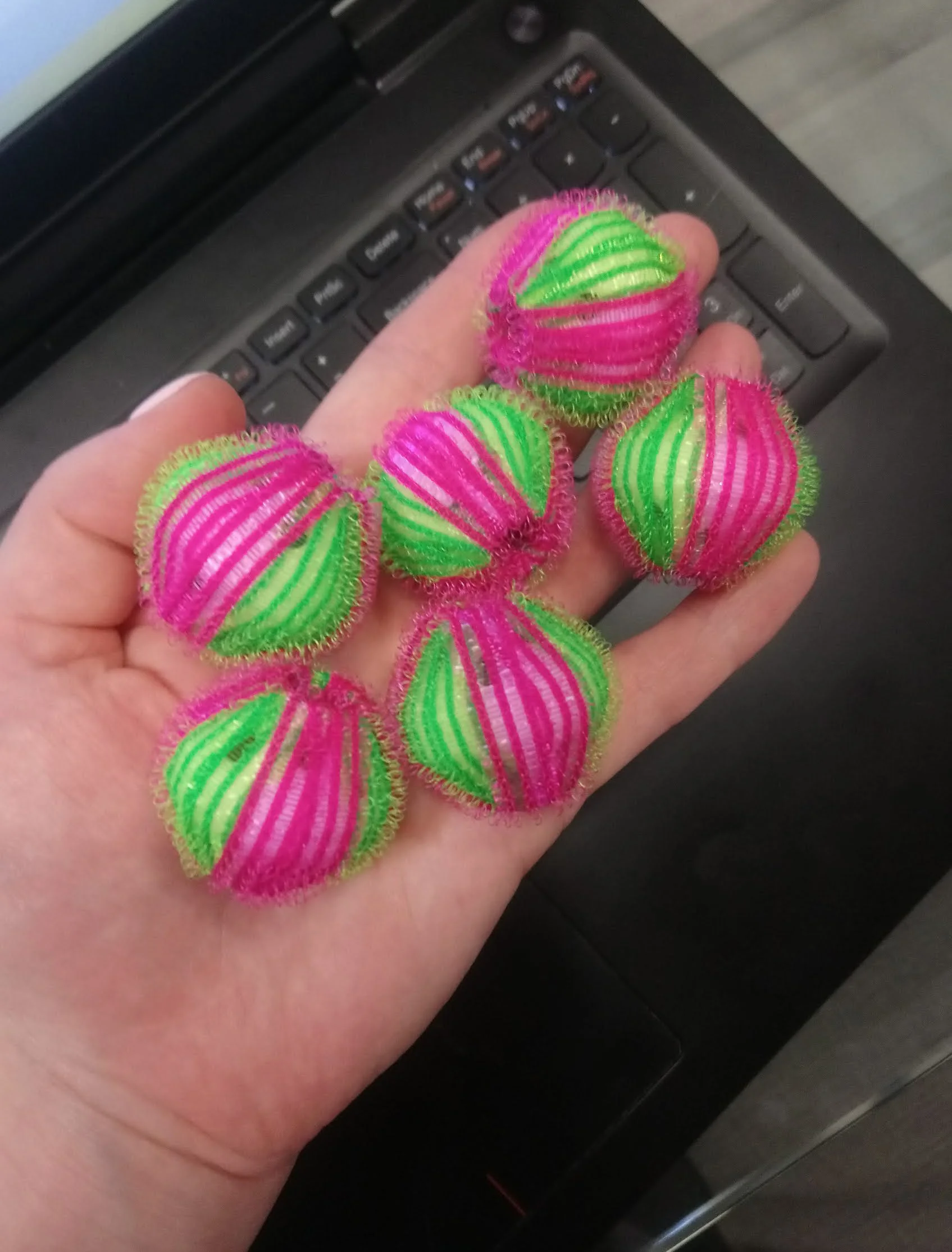 Идея хорошая, но эти шарики совсем не работают. Было уже 2 стирки, но шерсти на них практически не собралось. Зато дала коту их погонять по дому в качестве игрушки и он был в восторге.
